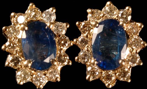 Faceted Sapphire Earrings with Diamonds - 18 K Gold Best